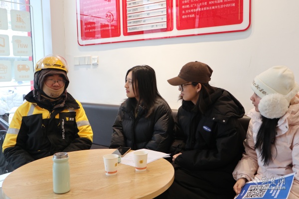 調(diào)研期間,實踐隊在街道統(tǒng)籌安排下,深入街道新就業(yè)群體服務(wù)驛站、新業(yè)態(tài)站點及“暖新聯(lián)盟”商家,通過實地走訪、座談交流、問卷調(diào)研等形式,與一線騎手、站點負責人、社區(qū)工作者面對面溝通。他們詳細了解新就業(yè)群體工作生活狀況、現(xiàn)實需求與參與基層治理意愿,重點調(diào)研志愿積分激勵、“五大員”培育、“黃小蜂助老送餐隊”等特色項目的運行成效。街道以服務(wù)型治理搭建信任紐帶、引導(dǎo)新就業(yè)群體融入基層治理的工作模式,為高校專業(yè)研究提供了鮮活的實踐樣本。