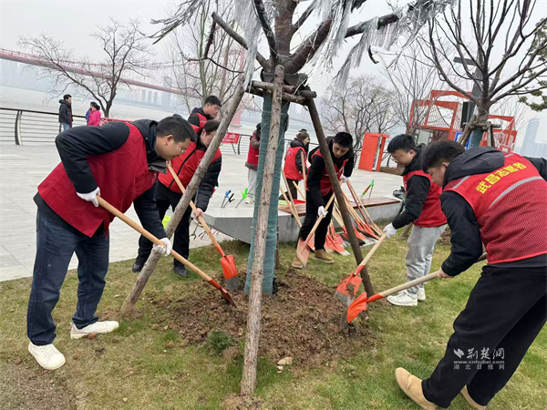 理論學(xué)習(xí)終要落地于實(shí)踐行動(dòng)。宣講結(jié)束后,志愿者們手持夾鉗、垃圾袋等工具,對(duì)長(zhǎng)江岸邊的垃圾、雜草及水面漂浮物開(kāi)展地毯式清理,不放過(guò)任何衛(wèi)生死角,用雙手讓雜亂的灘涂恢復(fù)整潔開(kāi)闊。恰逢植樹(shù)節(jié)將至,志愿者們又揮鍬鏟土、扶苗圍堰、提水澆灌,在指定區(qū)域有序栽種新苗,為長(zhǎng)江岸線(xiàn)增添一抹新綠,以實(shí)際行動(dòng)厚植生態(tài)底色,踐行綠色發(fā)展理念。