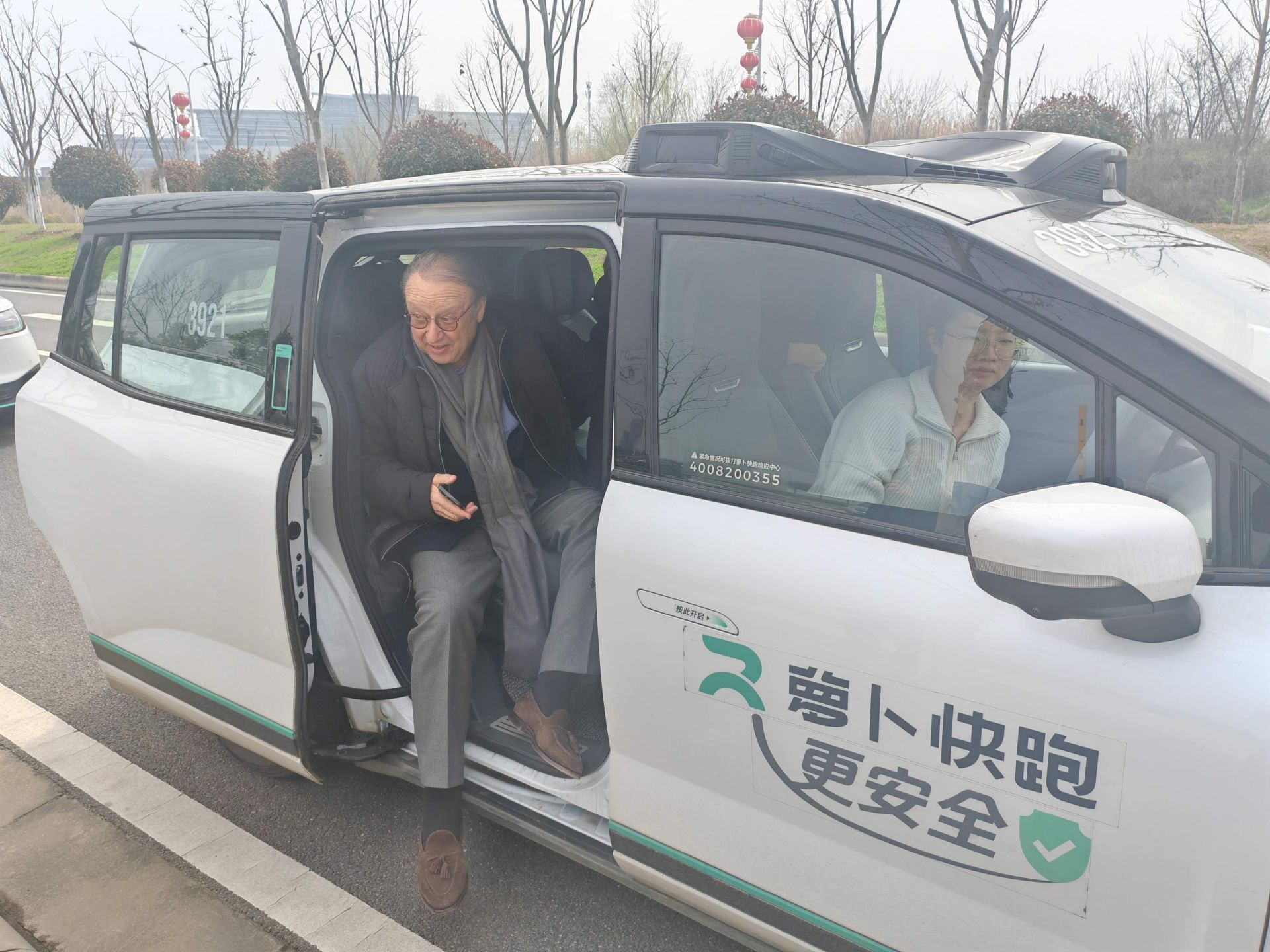 斯泰蘭蒂斯集團副董事長羅伯特·標致試乘體驗蘿卜快跑。通訊員供圖