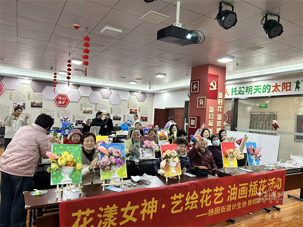 活動現(xiàn)場,長桌上整齊擺放著畫布、油彩、花材等材料。啟晨便民服務(wù)中心專業(yè)老師細(xì)致講解油畫色彩搭配、筆觸運(yùn)用技巧,手把手指導(dǎo)花材修剪、造型搭配要領(lǐng),耐心解答大家的創(chuàng)作疑問。居民們興致盎然,或蘸取油彩在畫布上揮灑創(chuàng)意,暈染出五彩斑斕的專屬畫作;或?qū)W⑿藜艋ㄖ?、搭配層次,一束束生機(jī)盎然的花藝作品接連成型,鄰里間相互交流心得、分享技巧,現(xiàn)場笑語不斷。