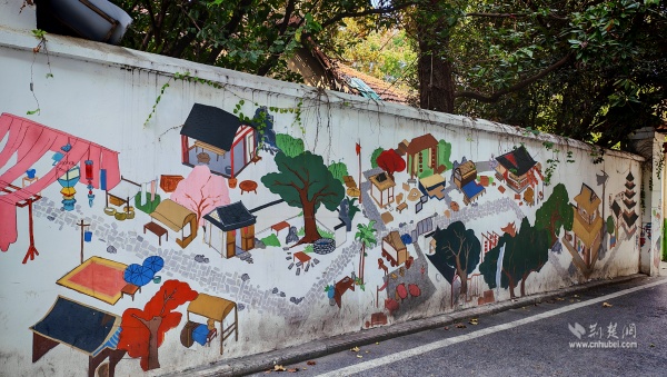 社區(qū)黨委以文化為著力點(diǎn),以“微改造、精提升”為路徑,探索打造古今交融、文旅共生的“宜游”社區(qū)。從九龍井正街到先賢街,藏在居民樓中、電線桿上的明楚王府文化彩繪與武昌古城元素相得益彰,地名文化墻以漫畫形式述說老街往事,生動(dòng)展示社區(qū)文化遺存和老街古巷歷史。各色花卉綠植與武漢主題創(chuàng)意打卡裝置珠玉其間,形成“幾步一景”的游覽體驗(yàn)。