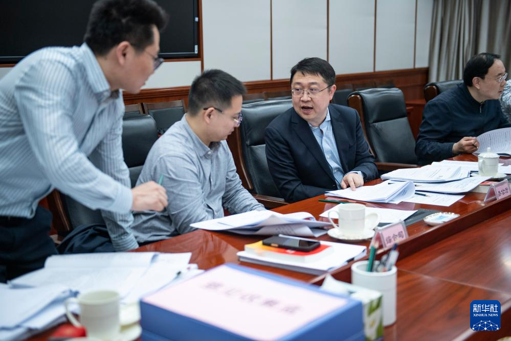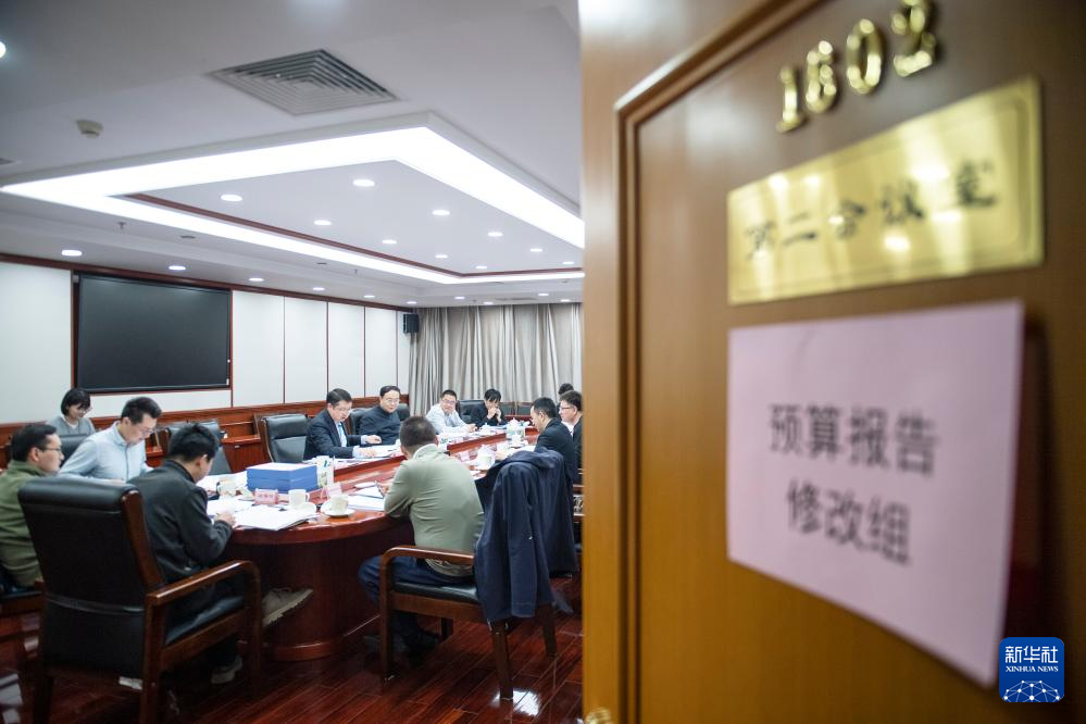 3月7日,財政部工作人員根據(jù)代表意見建議討論修改2026年預算報告。新華社記者 孫瑞博 攝