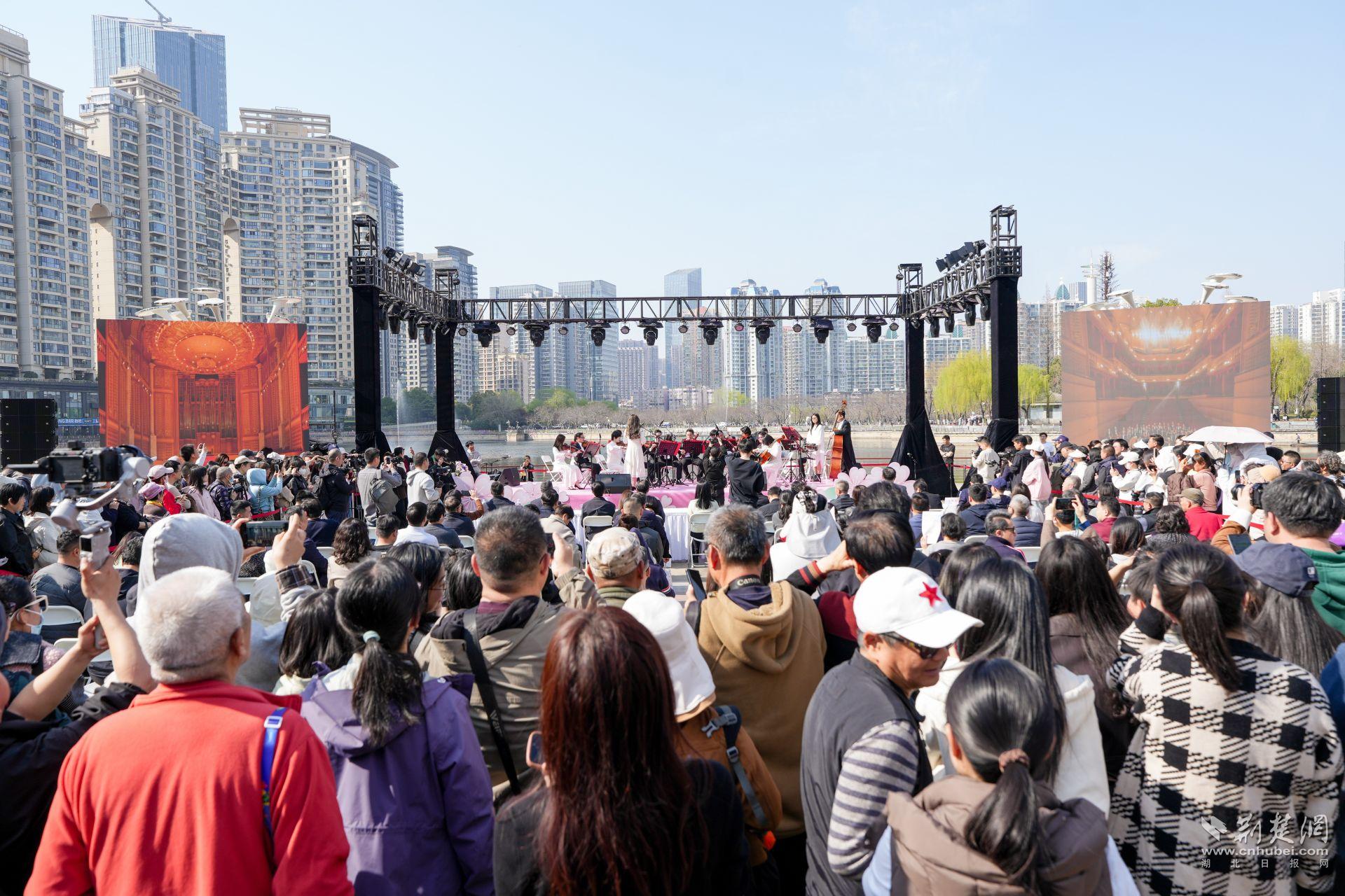 啟動儀式當天,西北湖廣場櫻花初綻。伴隨著武漢愛樂樂團悠揚的樂聲,2026江漢區(qū)賞櫻藝術(shù)季正式開啟?,F(xiàn)場不僅能圍觀陳銘有趣的春日漫談,還能看到上海歌舞團藝術(shù)總監(jiān)、國家一級演員朱潔靜將帶來群舞演出,在櫻花掩映間呈現(xiàn)一場藝術(shù)盛宴。