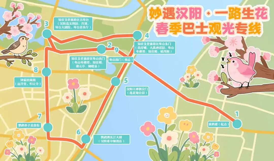 △“妙遇漢陽·一路生花”春季巴士觀光專線線路圖。