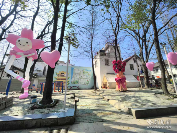 西廠口社區(qū)緊扣漢馬賽事契機,精心打造賽事沿線靚麗風景線。從后宰門到花香西廠街巷,社區(qū)因地制宜布置系列景觀小品,軟萌的櫻花人偶憨態(tài)可掬地“坐”在巷口,浪漫的粉色愛心懸掛裝置隨風輕搖,錯落有致的花箱綠植點綴其間,墻上的黃鶴樓手繪與街區(qū)地圖墻繪相映成趣。一步一景,處處成畫。這些精心布置的景觀裝置不僅裝點了春日街巷,也為市民游客提供了感受古城文化、記錄美好瞬間的公共空間。
