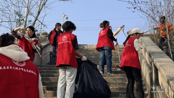武漢長江大橋蛇山南坡清潔行動。 通訊員供圖