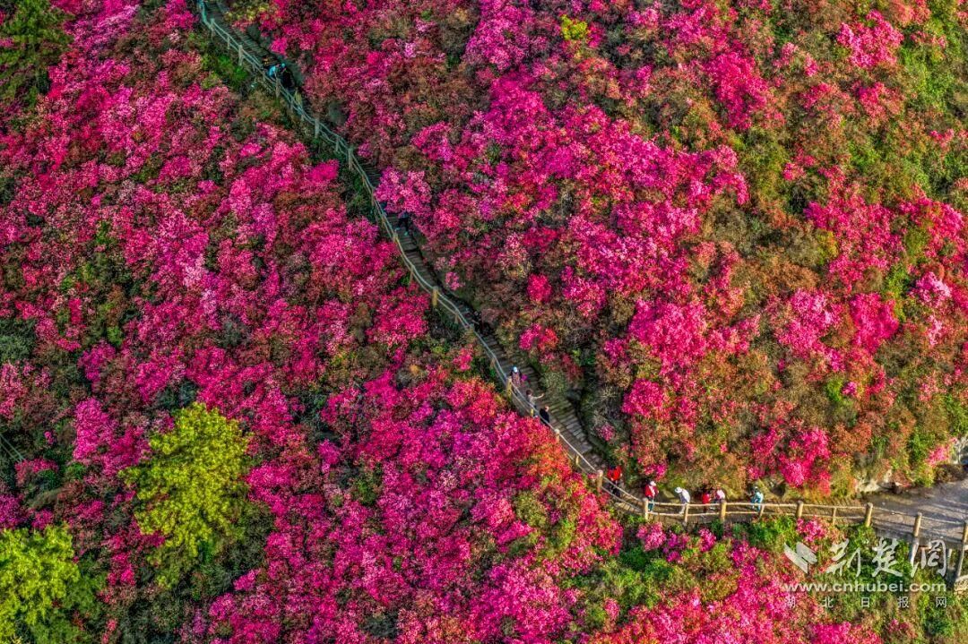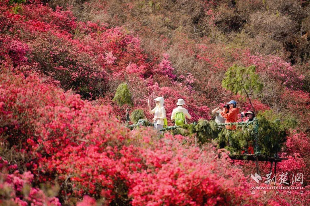 荊楚網(wǎng)(湖北日報網(wǎng))訊(通訊員黃宣)3月21日,2026武漢木蘭云霧山第十七屆杜鵑花嘉年華在黃陂木蘭云霧山景區(qū)啟幕。目前,景區(qū)內(nèi)花宇山、花海等核心賞花點(diǎn)的杜鵑花已進(jìn)入初放期,漫山紅遍,景色蔚為壯觀。