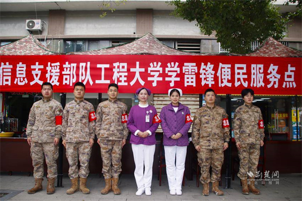 古田街道軍院社區(qū)攜手信息支援部隊工程大學(xué)搭建學(xué)雷鋒便民服務(wù)點。 通訊員供圖