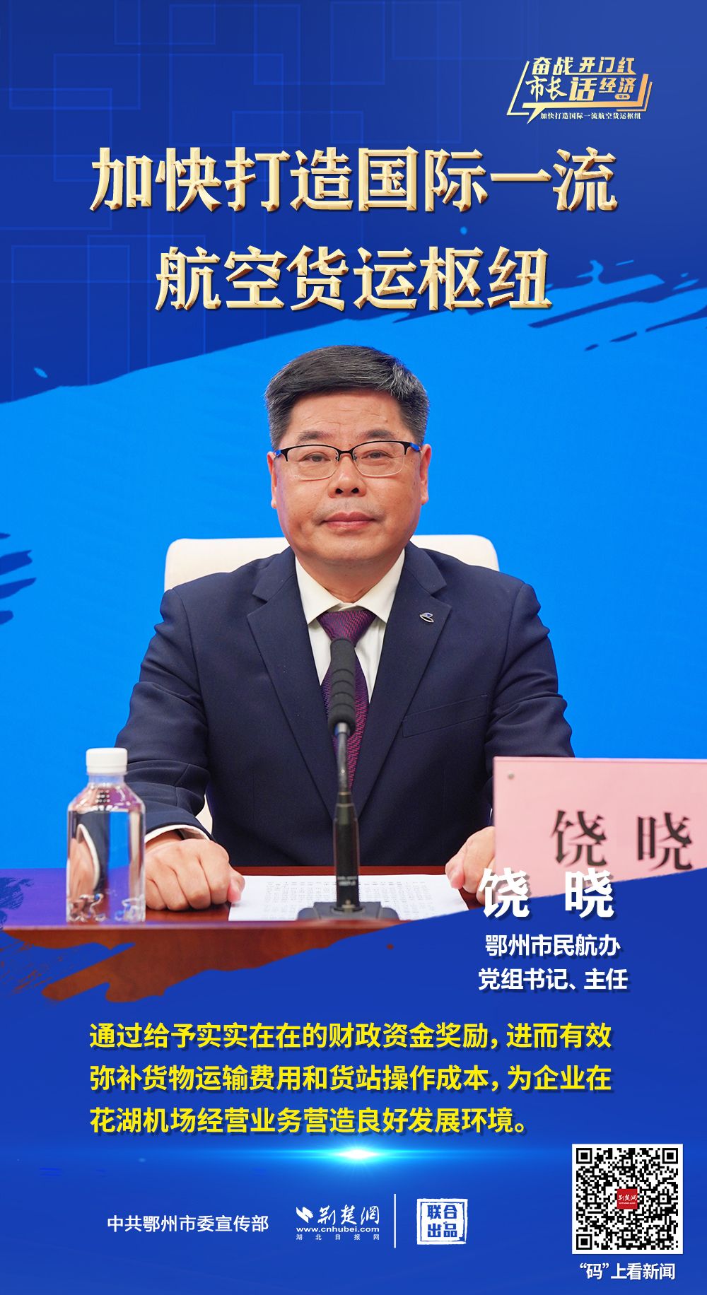 3月26日上午,省政府新聞辦舉行“奮戰(zhàn)開門紅 市長(zhǎng)話經(jīng)濟(jì)”系列新聞發(fā)布會(huì)第十三場(chǎng),介紹“鄂州花湖機(jī)場(chǎng)加快打造國(guó)際一流航空貨運(yùn)樞紐”相關(guān)情況,并回答主流媒體提問(wèn)。