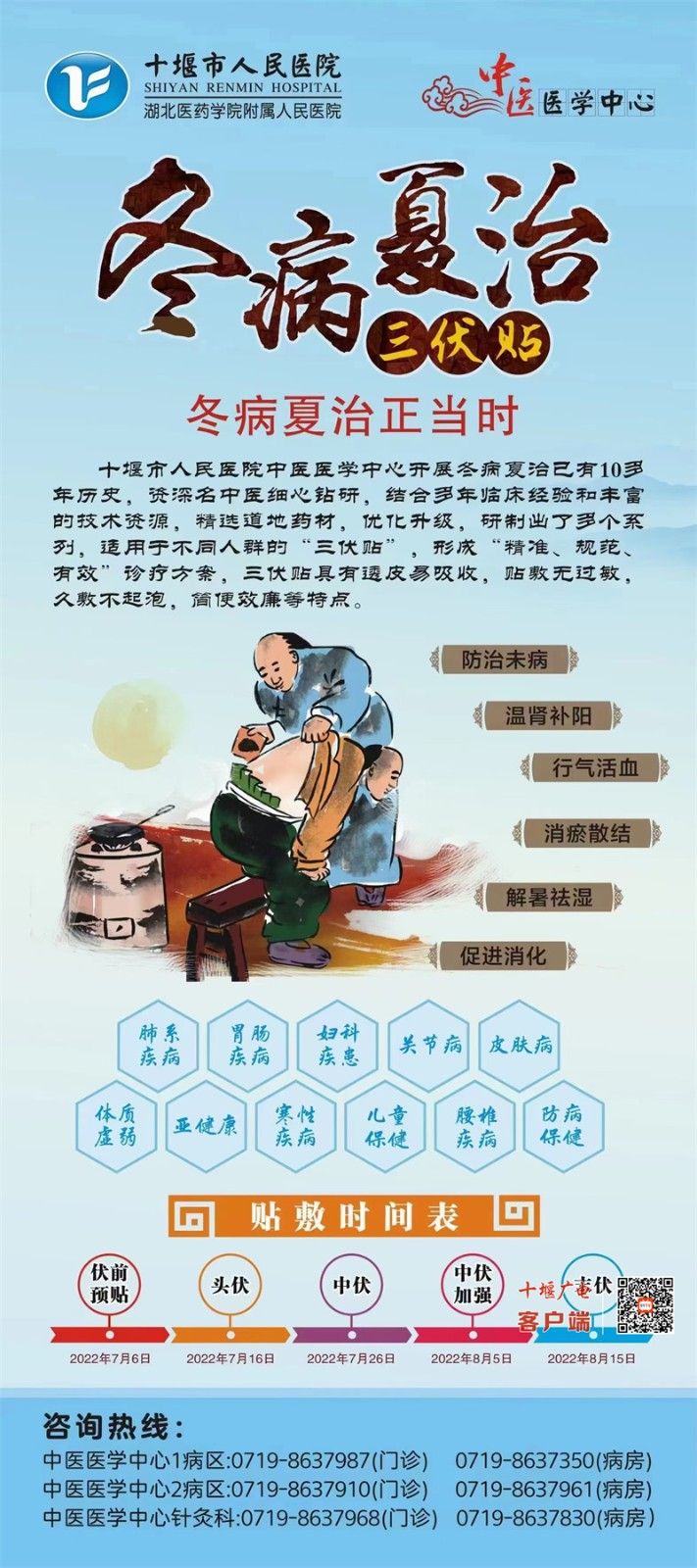 十堰廣電訊(全媒體記者 張焱)三伏天是一年中陽氣最旺盛的季節(jié),也是“冬病夏治”的黃金時間,此時貼敷“三伏貼”能激活人體免疫力,達到增強機體抵抗力的作用。今天上午,記者從市人民醫(yī)院中醫(yī)醫(yī)學(xué)中心了解到:中心開展的“冬病夏治”三伏貼于今日“火熱”開貼。