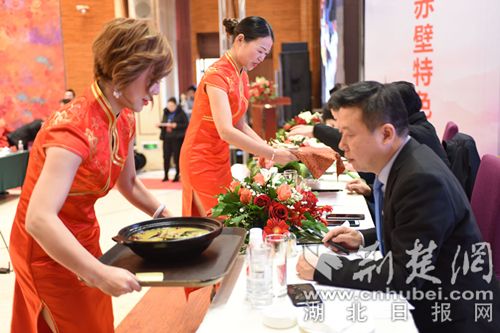 經(jīng)過(guò)精心制作,菜品《三顧茅廬》《蒲圻魚(yú)嘴》《茶香紅酒牛肉》《赤壁魚(yú)羊鮮》等極具咸寧地方特色的美食香飄四溢,讓現(xiàn)場(chǎng)觀眾一飽眼福,滿(mǎn)足味蕾需求的同時(shí),也展示了地方飲食文化特色。