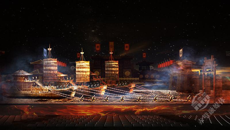 2000多年前,諸葛亮借的東風(fēng),是摧枯拉朽、克敵制勝的戰(zhàn)火雄風(fēng);2000多年后,三國赤壁古戰(zhàn)場借的東風(fēng),則是凝心聚氣、砥礪奮進(jìn)的時代之風(fēng)。演出將赤壁之戰(zhàn)這盤歷史大棋置于天地之間,以三國群雄為弈者,以演員和觀眾為棋子,利用光影特效與舞美裝置的變換,將戰(zhàn)役的多個關(guān)鍵情節(jié)進(jìn)行藝術(shù)化提煉與重構(gòu),運(yùn)用聲、光、電等現(xiàn)代舞美技術(shù),將歷史與現(xiàn)實(shí)、虛擬與真實(shí)融為一體,構(gòu)建起一個戰(zhàn)火紛飛、羽箭穿空的三國世界,讓赤壁之戰(zhàn)從史書中的符號躍升為可觸摸、可參與的精神場域。
