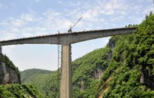 湖北宜萬鐵路野三河大橋位于湖北省恩施州建始縣與巴東縣交界處,它是一座主跨為124米不對稱雙線平行雙肋中式復(fù)合鋼管混凝土桁架坡拱橋,由中承式拱橋和下承式拱橋兩部分組成,這種不對稱坡拱橋在國內(nèi)尚屬首例。該橋由湖北省交通規(guī)劃設(shè)計院設(shè)計,于2006年3月份開工,2007年1月成功合龍。