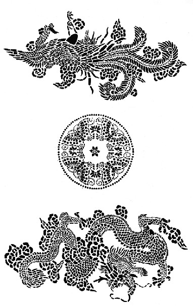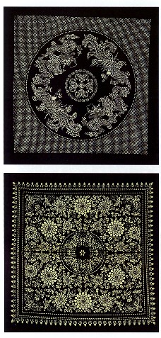 藍印花布遍及湖北全省,尤以天門藍印花布最負盛名。其特點:1、藍與白的選擇,藍白兩色并非吉祥色,然而經(jīng)過藝人們的巧妙的藝術(shù)處理,使人感到清新明快;2、虛與實的結(jié)合:以點組成線,以線組成面,若合若離,似為一體,實又分離。